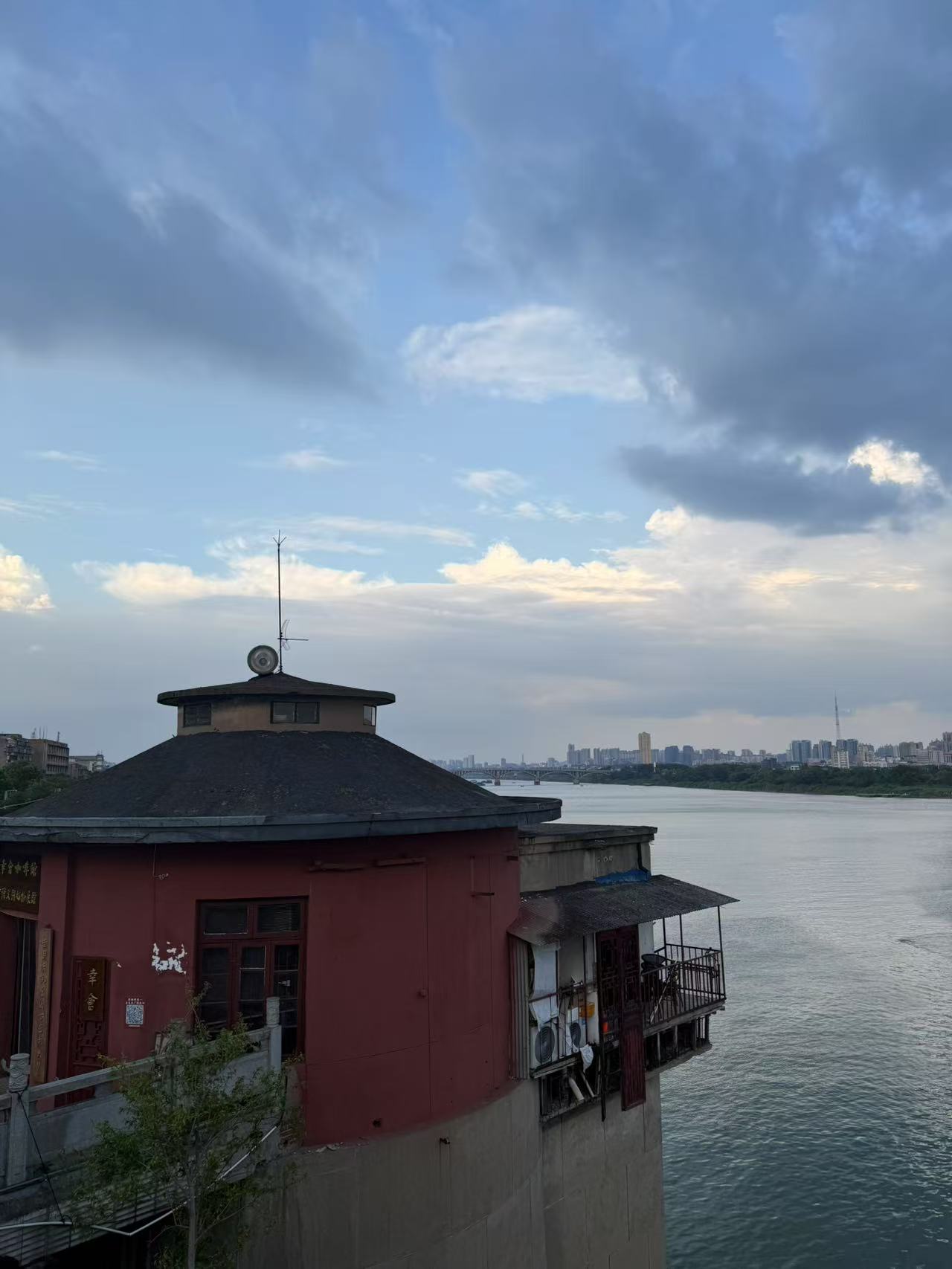 行至湘潭,"人困马乏",吃顿饭休整一下,湘江两岸景色怡人。
