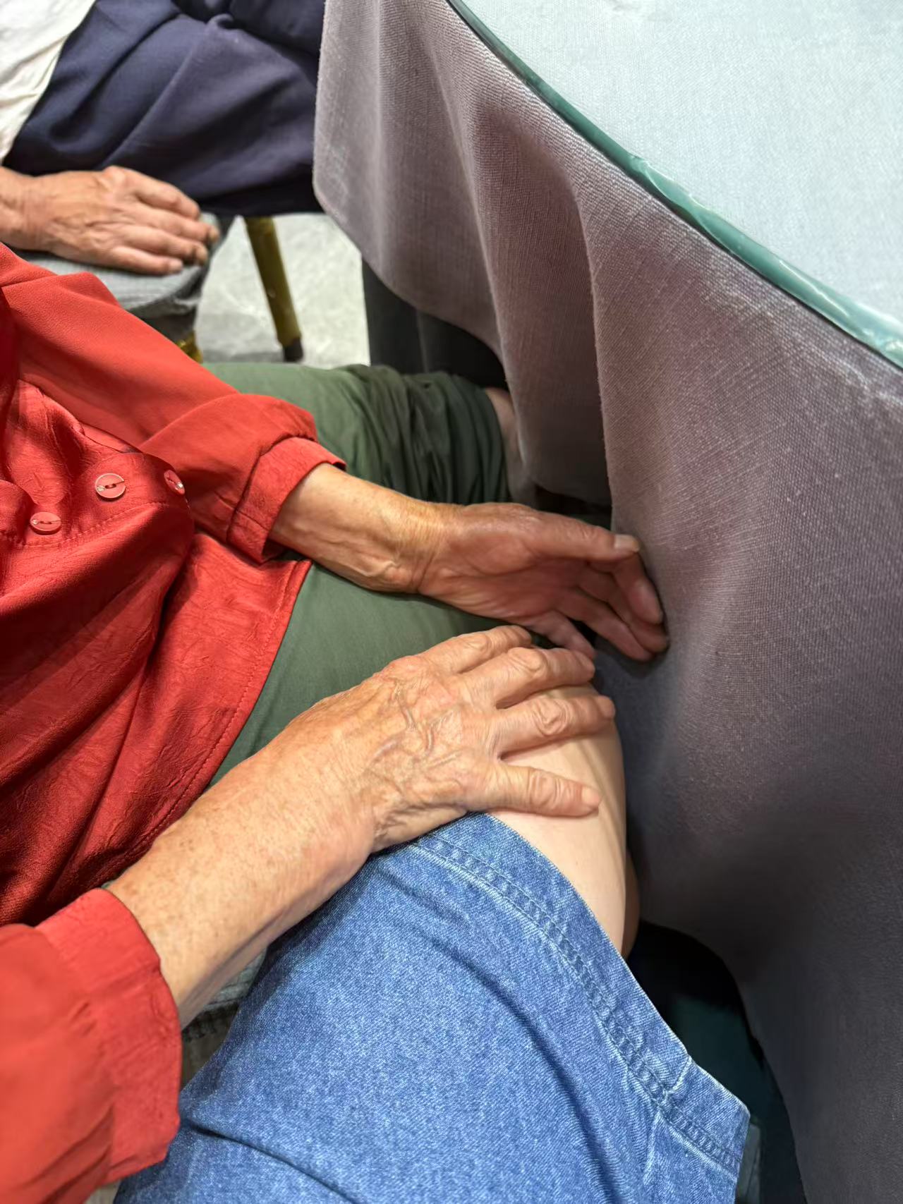 吃晚饭的时候,84岁的奶奶摸着我的腿,我不知道说什么,我也不敢动。
