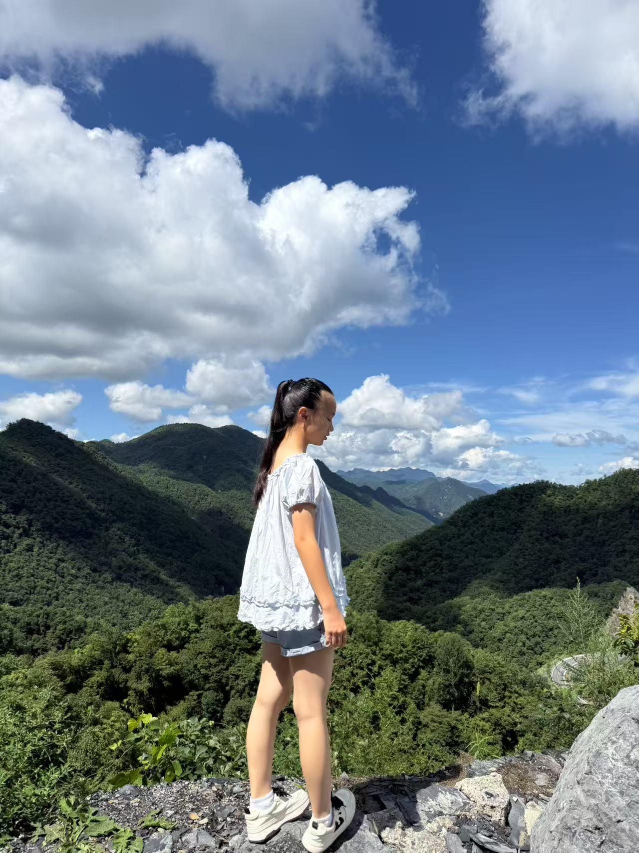 带孩子去看山,人在山顶的时候,心情总是会变好