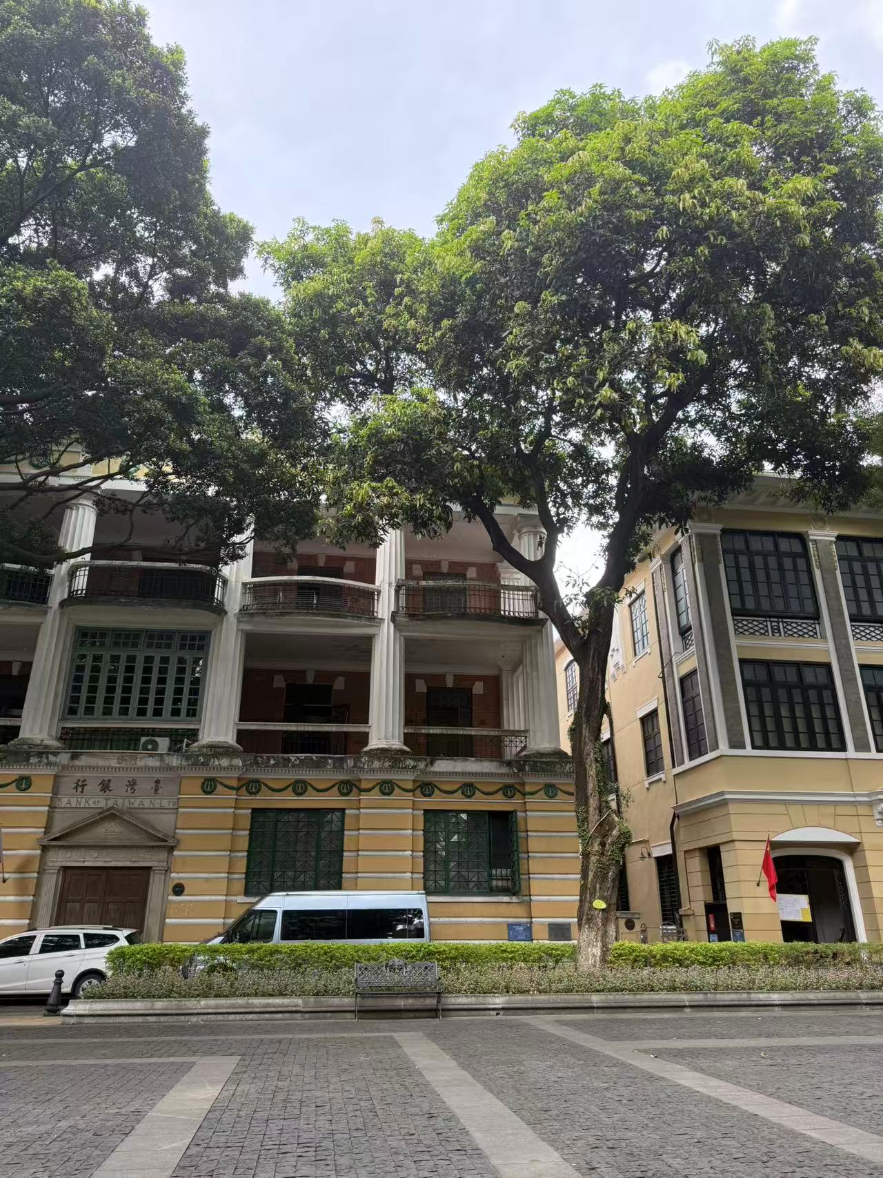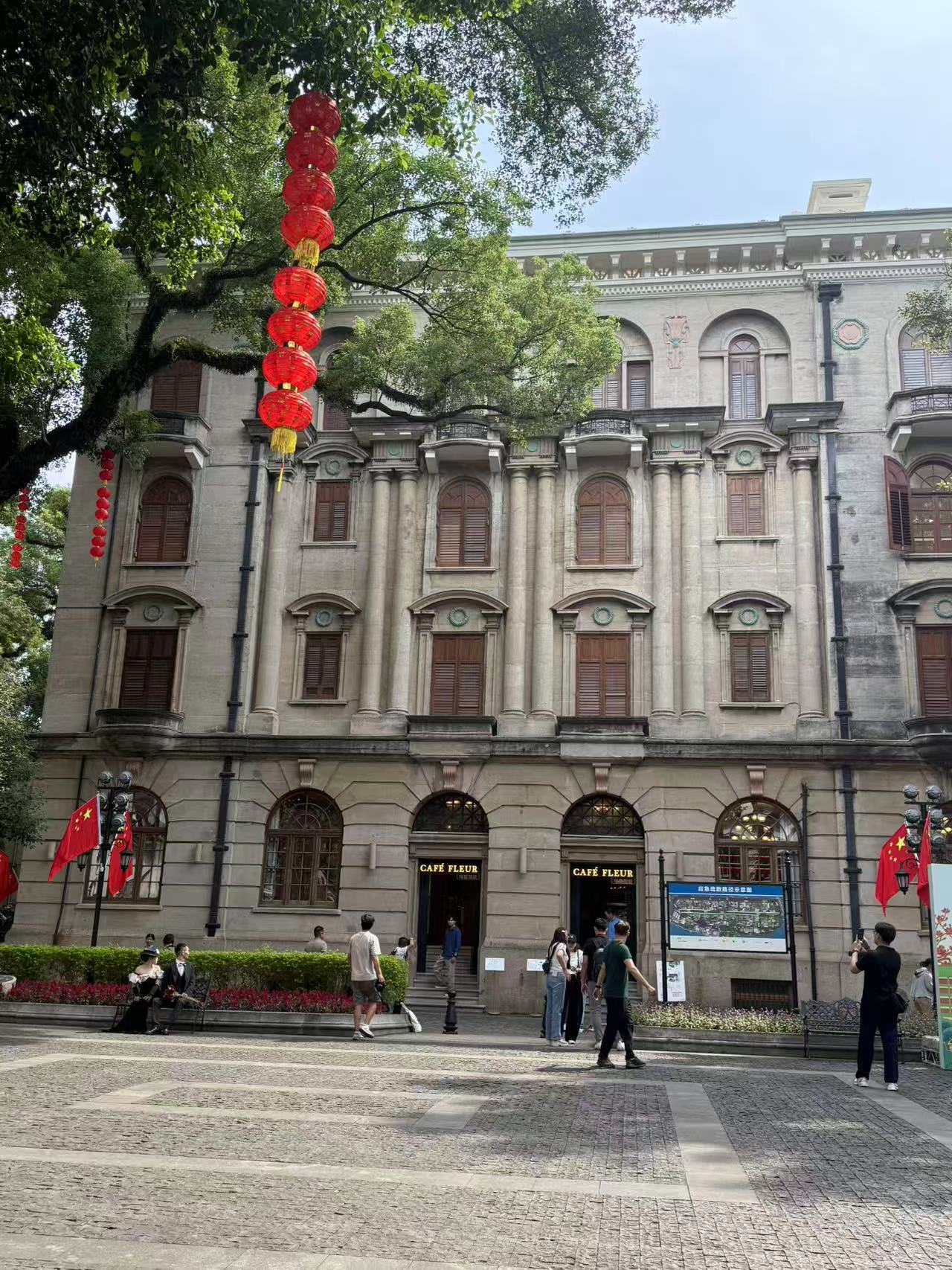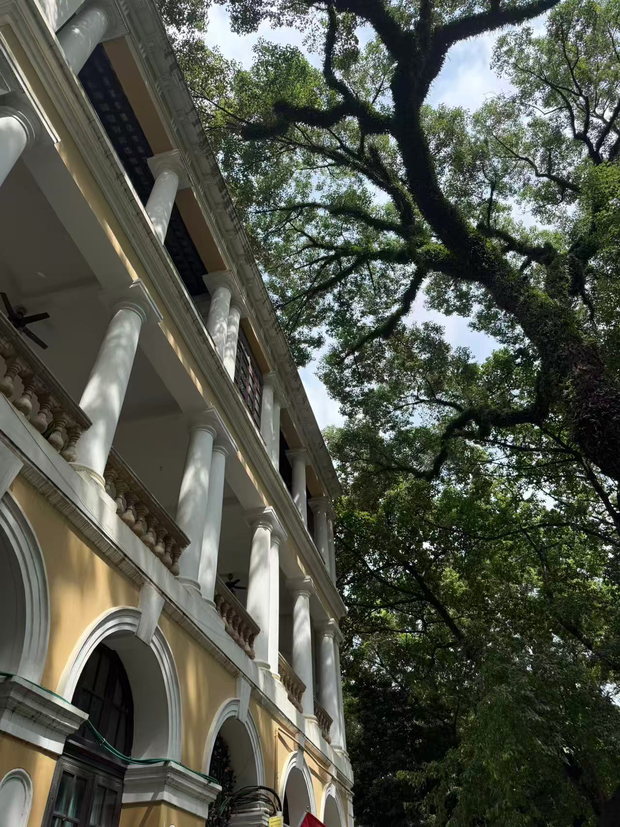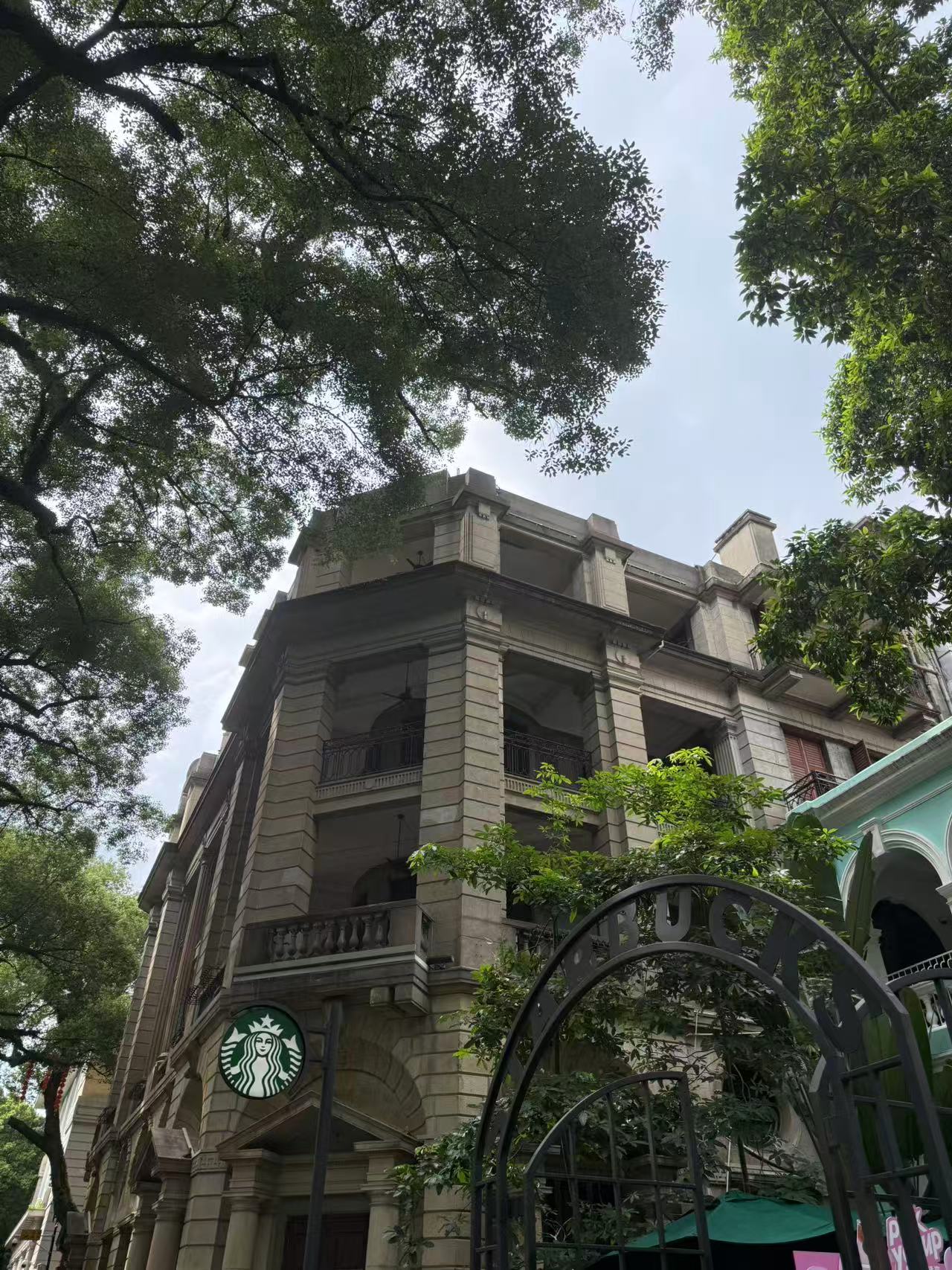 既然黄埔军校看不了,那就去看看沙面吧,这里有大片的西洋建筑,曾经是租界,现在的比利时驻广州领事馆依然在这里,大部分建筑都超过100年了,期间绿树成荫,干净整洁,古色古香。沙面的停车位比较紧张,而且是立体停车场,如果是周末要早点去。