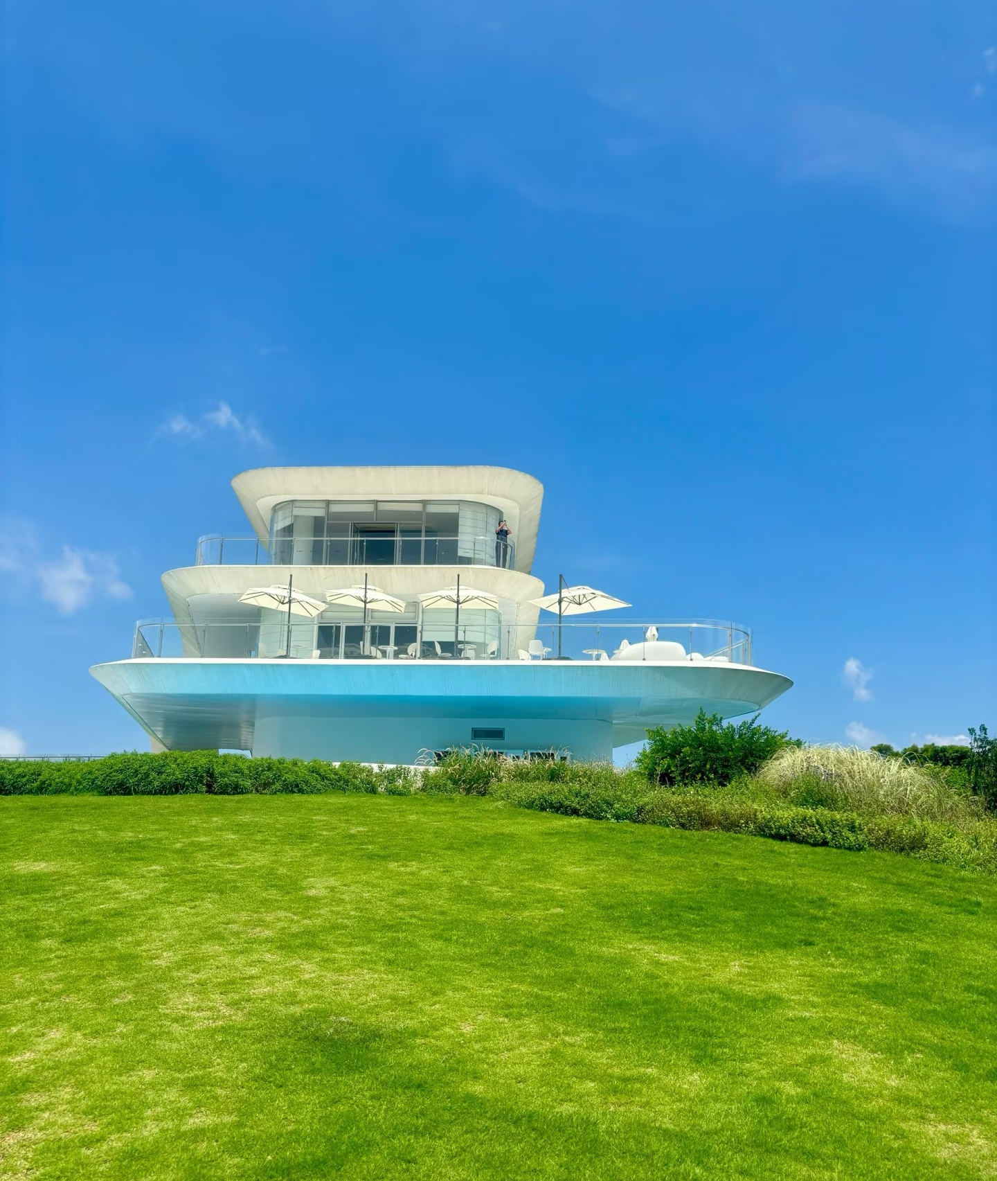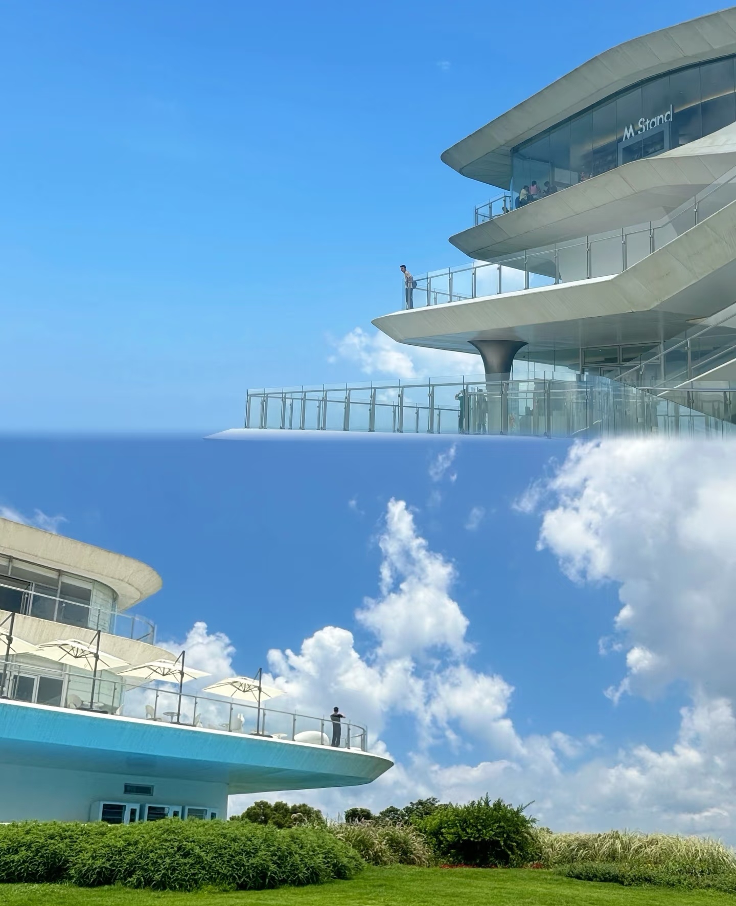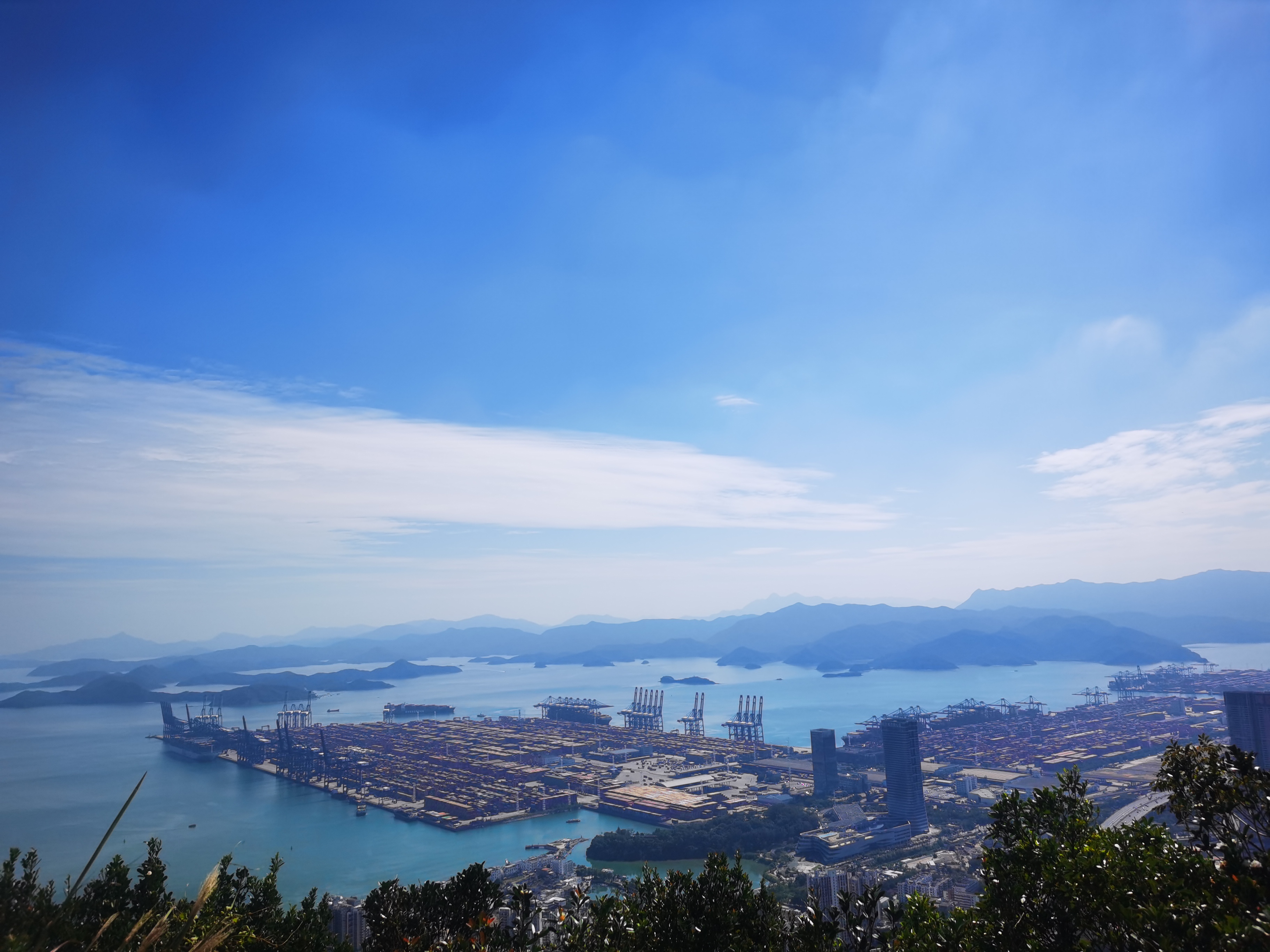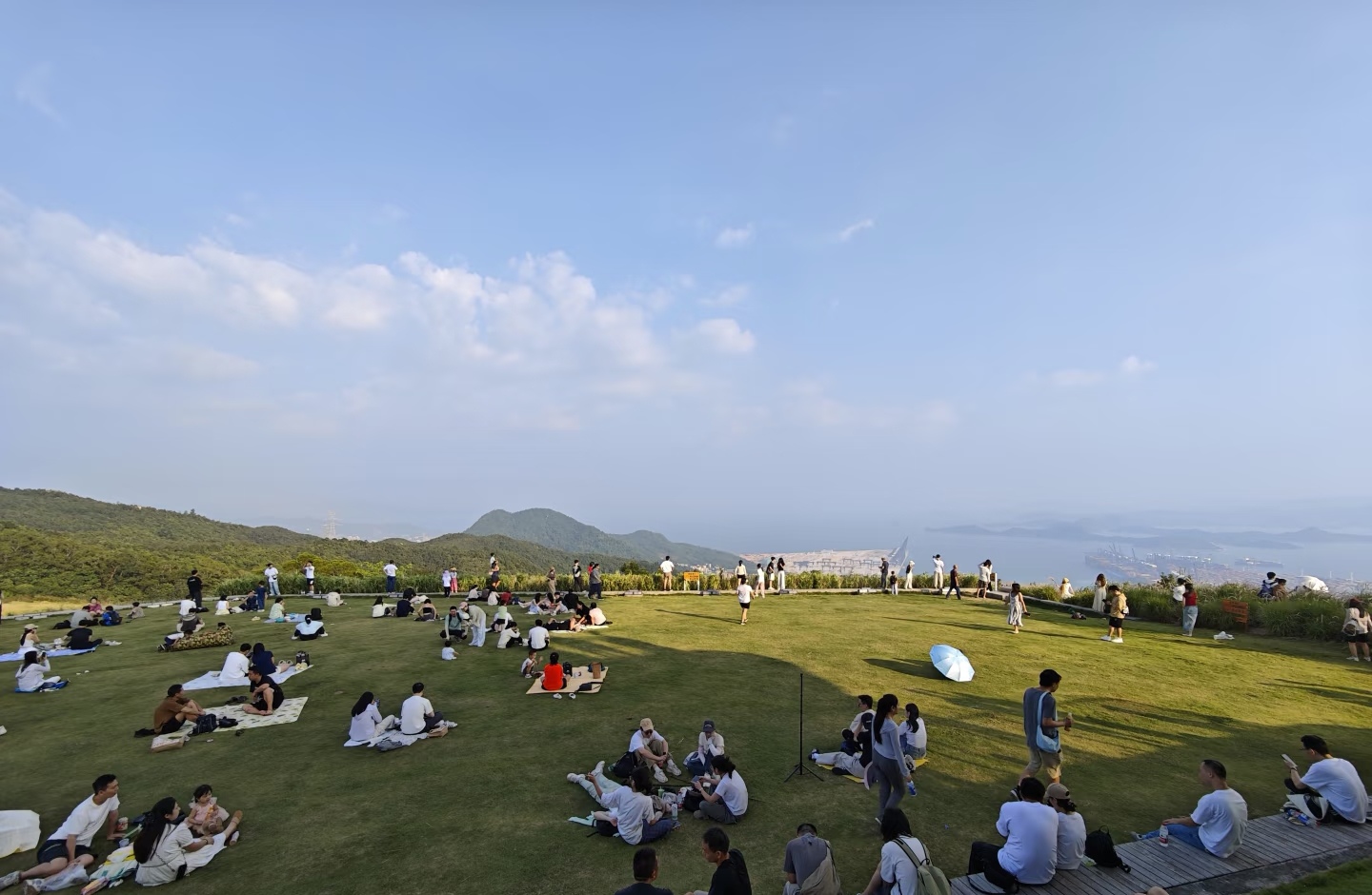 2025年10月25日,秋高气爽,适合户外活动。周六这天去打卡了云海公园——深圳版的“天空之城”,在微信收藏夹里面放了 2 年景点。说是公园,其实主要就是一个三层的观景台️。青绿的草地、蔚蓝的大海、红色的集装箱、墨绿色的远山,蓝天白云,构成这幅美丽的云海画卷,尽收眼底,这里随手一拍都能出大片。纯白色观景台,像在云端,俯瞰盐田港太治愈了,吹风发呆很是惬意,放空脑袋。